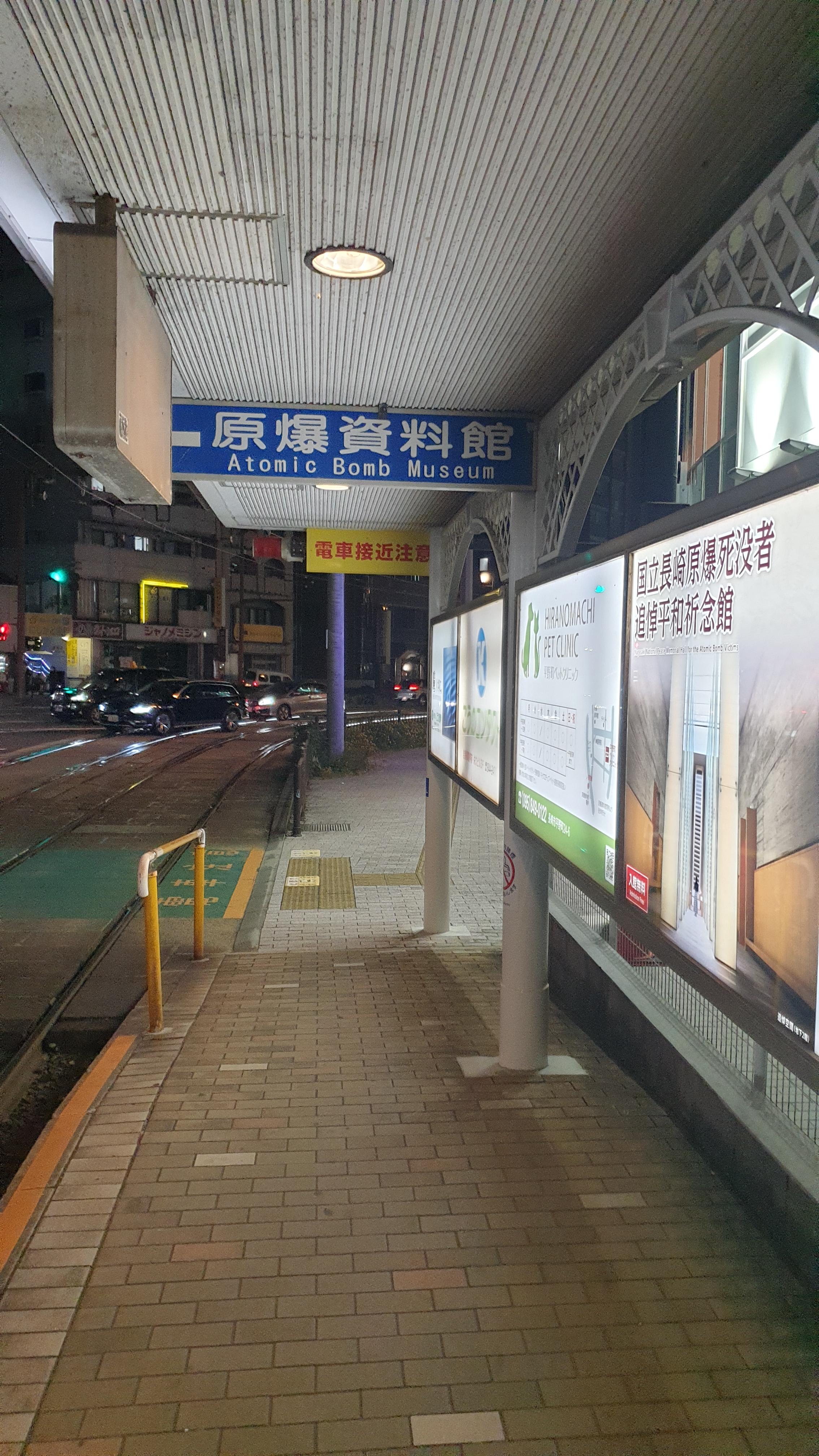 나가사키 노면전차 정류장의 모습