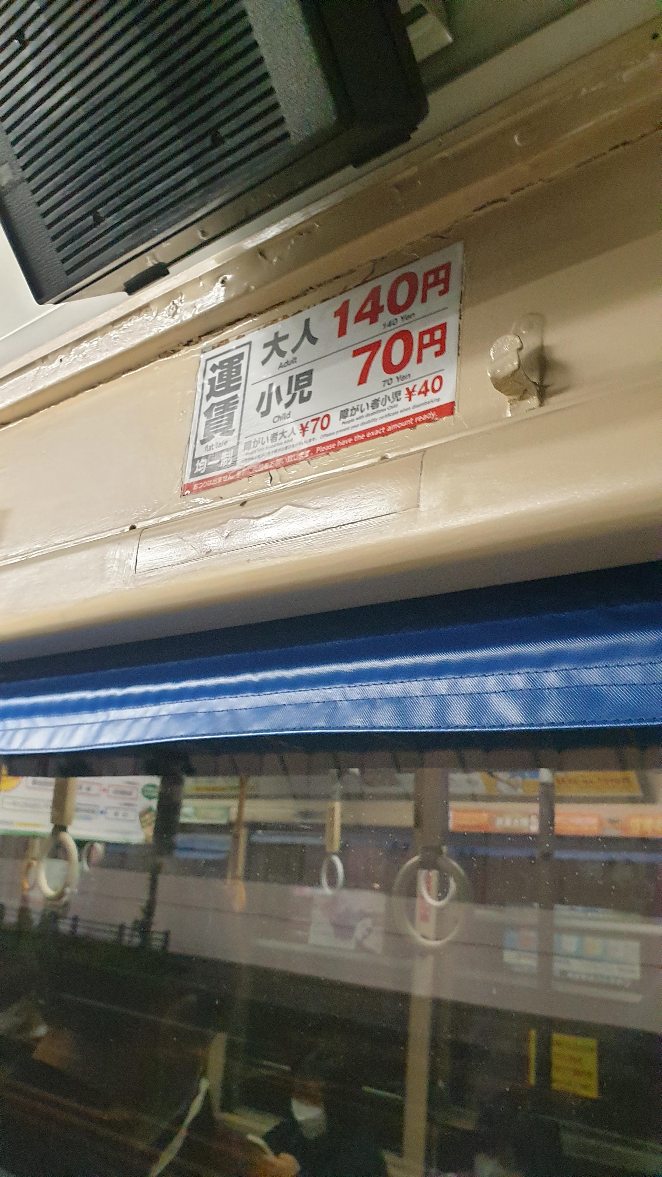 3) 종점에서 종점을 가도 무조건 140엔으로 통일되있다