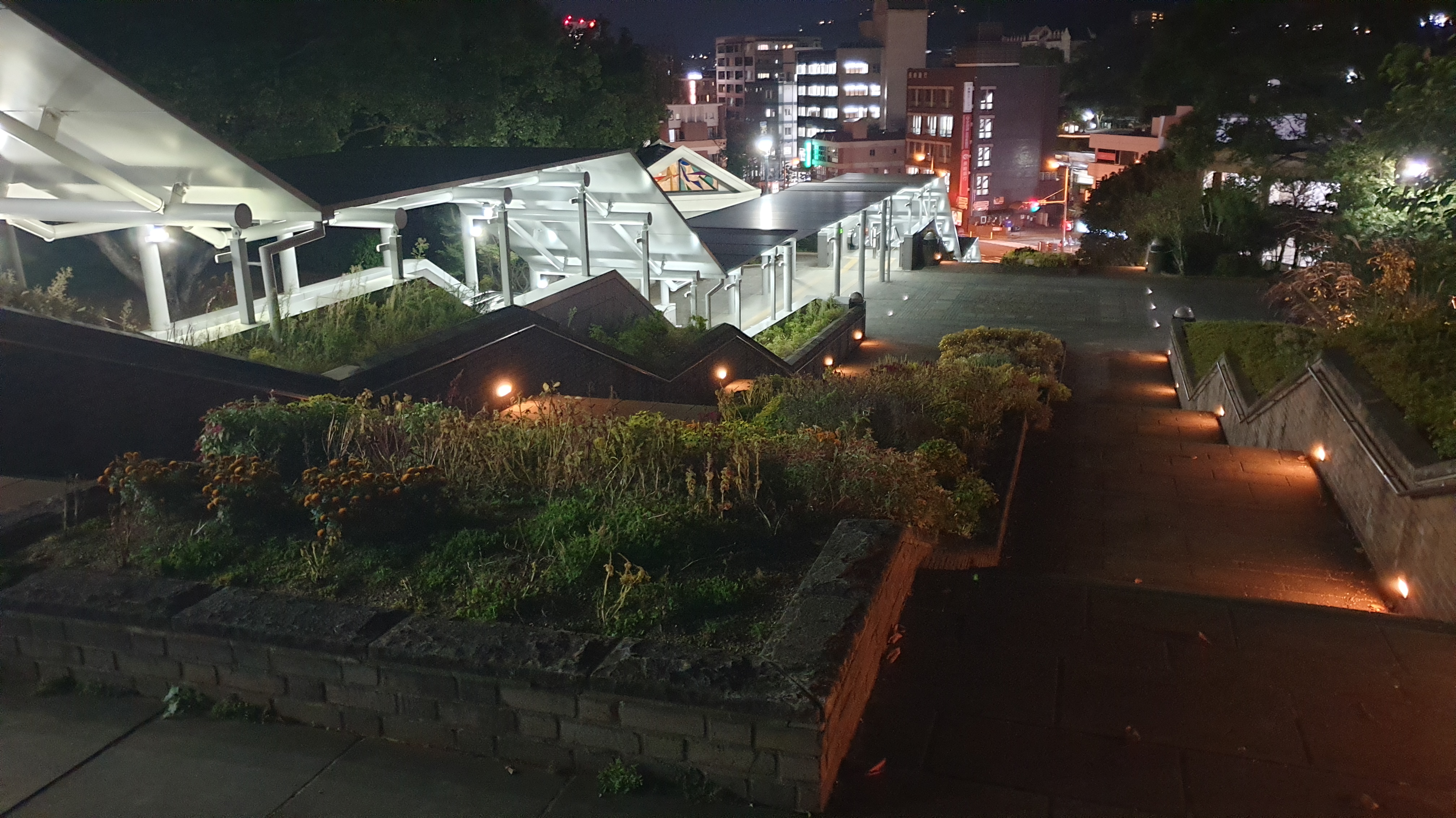 이 계단으로 내려가거나 옆의 비스듬한 길로 발걸음을 돌렸다.