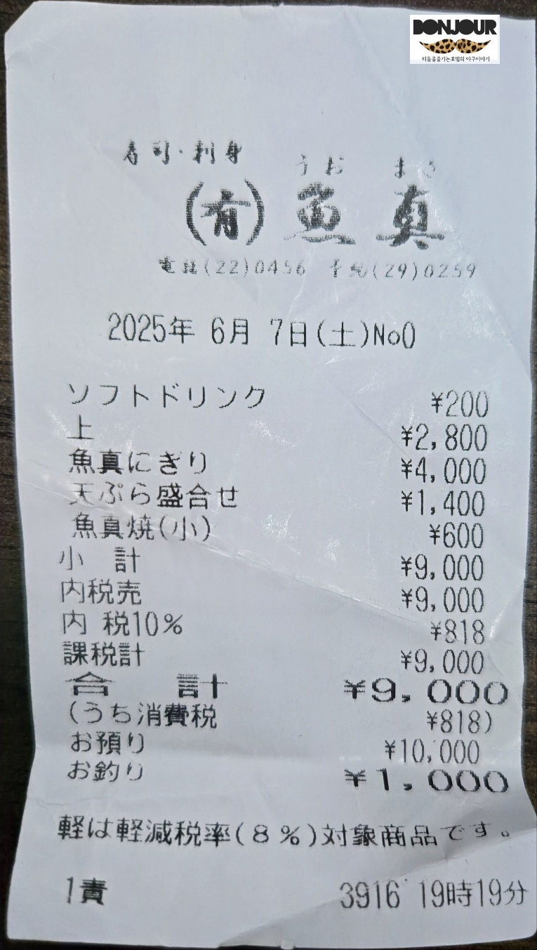 - 대표메뉴 : 우오마사니기리(약 4,000엔)